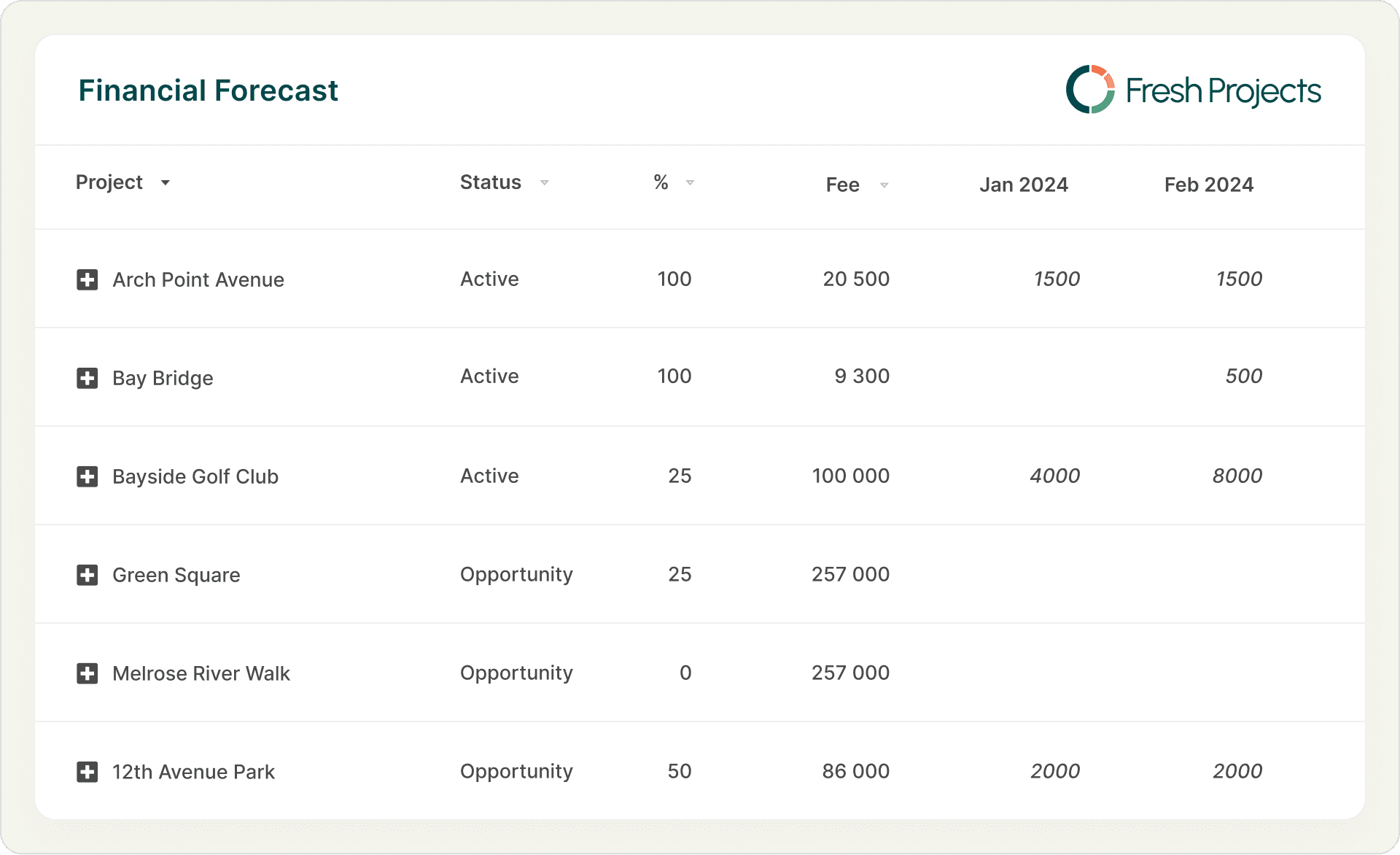 Image reference: Fresh Projects Forecast
