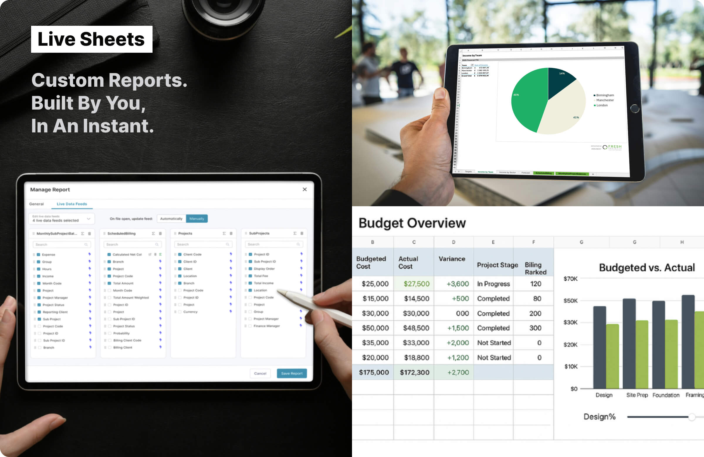 Open any Live Sheet and Fresh Projects pushes the latest timesheets, expenses, invoices, and project details directly into your workbook without you needing to refresh.